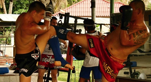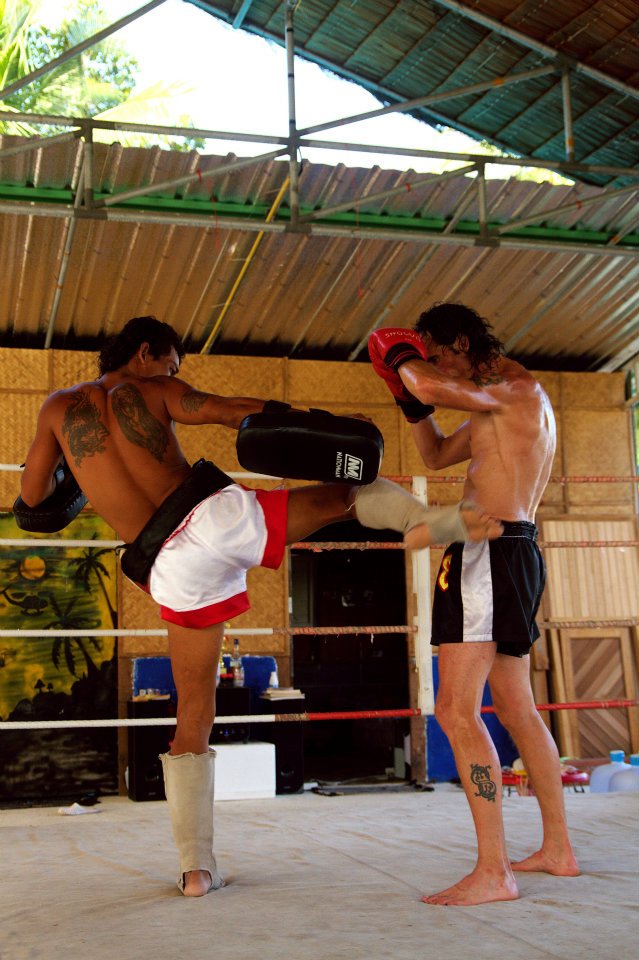 The morning session at Diamond Muay Thai runs from 8am-11am and the afternoon session runs from 4pm-7pm. The general training structure outline is as follows: jogging (either in the jungle, on the beach or sprints), stretching, pad work, clinching or sparring and then some strength and conditioning exercises to finish off the sessions.